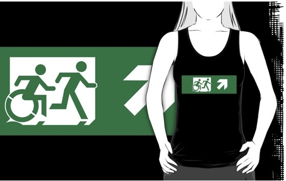 Accessible Exit Sign Project Wheelchair Wheelie Running Man Symbol Means of Egress Icon Disability Emergency Evacuation Fire Safety Adult T-shirt 454