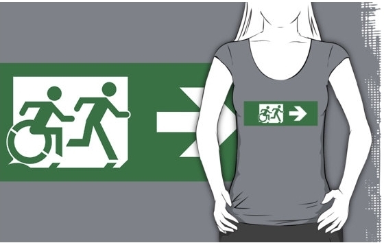 Accessible Exit Sign Project Wheelchair Wheelie Running Man Symbol Means of Egress Icon Disability Emergency Evacuation Fire Safety Adult T-shirt 459