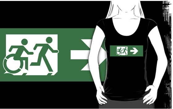Accessible Exit Sign Project Wheelchair Wheelie Running Man Symbol Means of Egress Icon Disability Emergency Evacuation Fire Safety Adult T-shirt 460