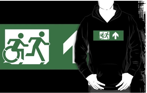 Accessible Exit Sign Project Wheelchair Wheelie Running Man Symbol Means of Egress Icon Disability Emergency Evacuation Fire Safety Adult T-shirt 463