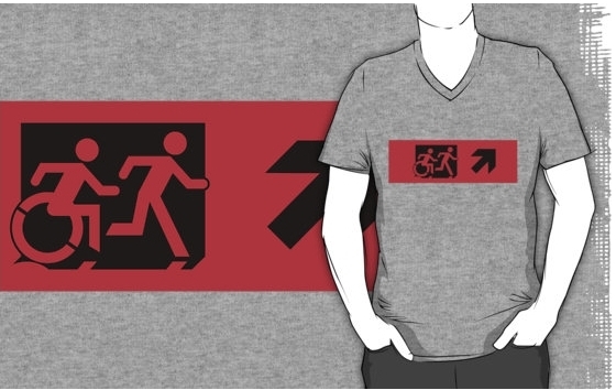 Accessible Exit Sign Project Wheelchair Wheelie Running Man Symbol Means of Egress Icon Disability Emergency Evacuation Fire Safety Adult T-shirt 464