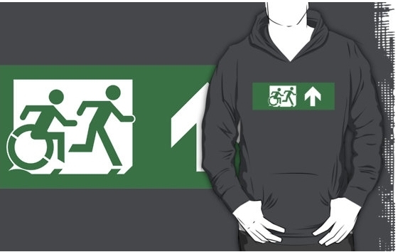 Accessible Exit Sign Project Wheelchair Wheelie Running Man Symbol Means of Egress Icon Disability Emergency Evacuation Fire Safety Adult T-shirt 466