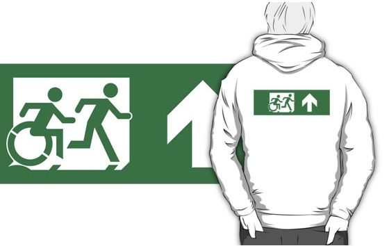 Accessible Exit Sign Project Wheelchair Wheelie Running Man Symbol Means of Egress Icon Disability Emergency Evacuation Fire Safety Adult T-shirt 468