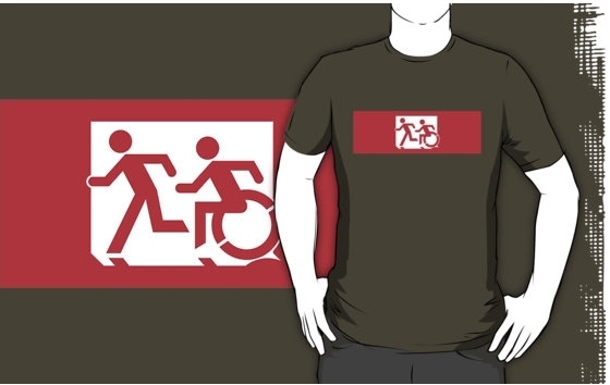 Accessible Exit Sign Project Wheelchair Wheelie Running Man Symbol Means of Egress Icon Disability Emergency Evacuation Fire Safety Adult T-shirt 469