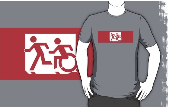 Accessible Exit Sign Project Wheelchair Wheelie Running Man Symbol Means of Egress Icon Disability Emergency Evacuation Fire Safety Adult T-shirt 474