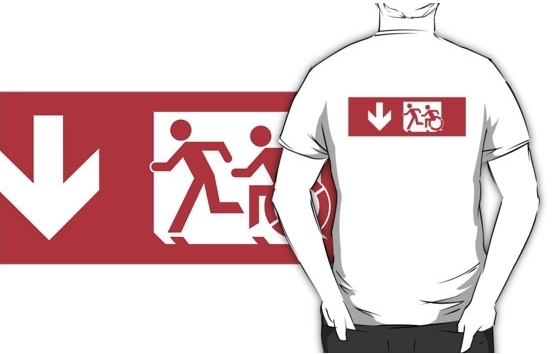 Accessible Exit Sign Project Wheelchair Wheelie Running Man Symbol Means of Egress Icon Disability Emergency Evacuation Fire Safety Adult T-shirt 479