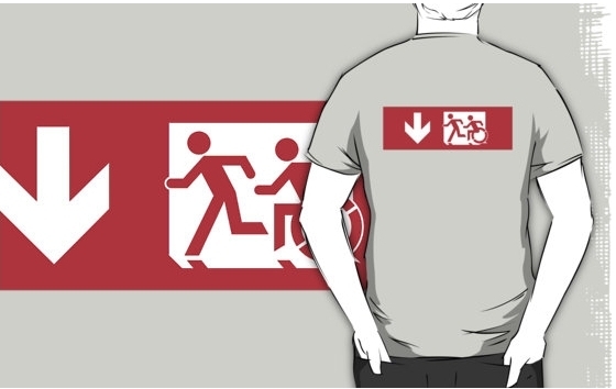 Accessible Exit Sign Project Wheelchair Wheelie Running Man Symbol Means of Egress Icon Disability Emergency Evacuation Fire Safety Adult T-shirt 481