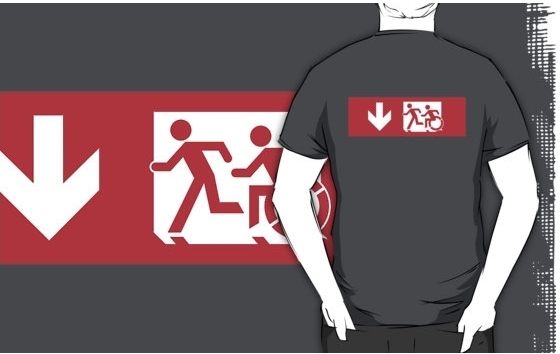 Accessible Exit Sign Project Wheelchair Wheelie Running Man Symbol Means of Egress Icon Disability Emergency Evacuation Fire Safety Adult T-shirt 483
