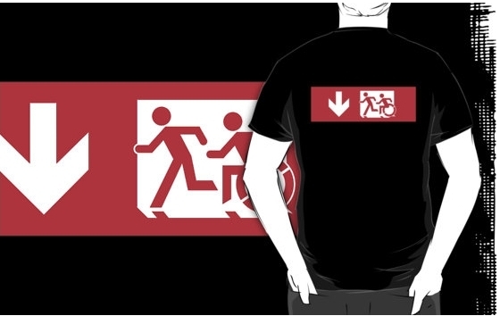 Accessible Exit Sign Project Wheelchair Wheelie Running Man Symbol Means of Egress Icon Disability Emergency Evacuation Fire Safety Adult T-shirt 484