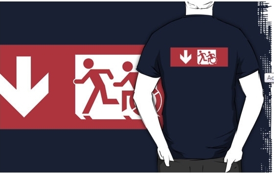 Accessible Exit Sign Project Wheelchair Wheelie Running Man Symbol Means of Egress Icon Disability Emergency Evacuation Fire Safety Adult T-shirt 487