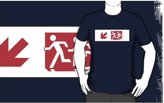 Accessible Exit Sign Project Wheelchair Wheelie Running Man Symbol Means of Egress Icon Disability Emergency Evacuation Fire Safety Adult T-shirt 489