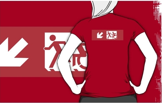 Accessible Exit Sign Project Wheelchair Wheelie Running Man Symbol Means of Egress Icon Disability Emergency Evacuation Fire Safety Adult T-shirt 491