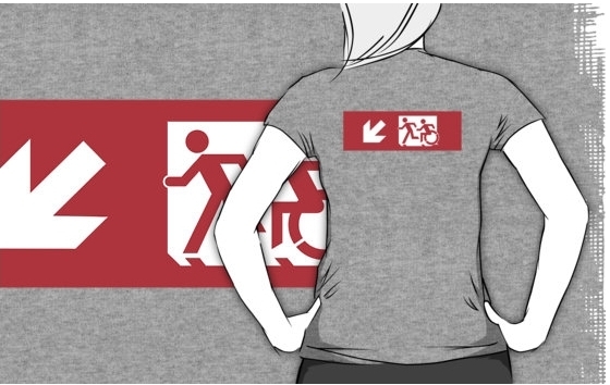 Accessible Exit Sign Project Wheelchair Wheelie Running Man Symbol Means of Egress Icon Disability Emergency Evacuation Fire Safety Adult T-shirt 493