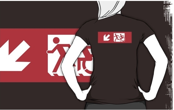 Accessible Exit Sign Project Wheelchair Wheelie Running Man Symbol Means of Egress Icon Disability Emergency Evacuation Fire Safety Adult T-shirt 494