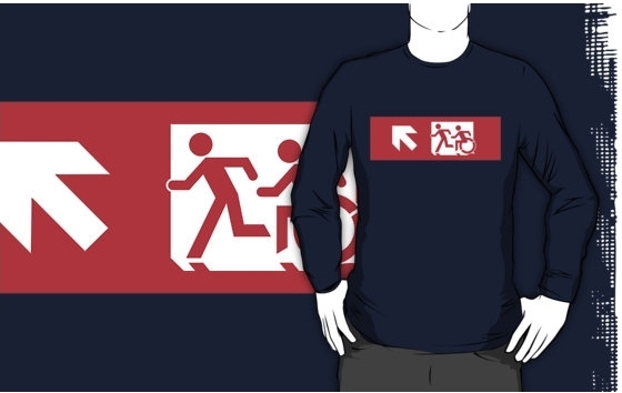 Accessible Exit Sign Project Wheelchair Wheelie Running Man Symbol Means of Egress Icon Disability Emergency Evacuation Fire Safety Adult T-shirt 497