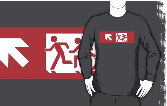 Accessible Exit Sign Project Wheelchair Wheelie Running Man Symbol Means of Egress Icon Disability Emergency Evacuation Fire Safety Adult T-shirt 502