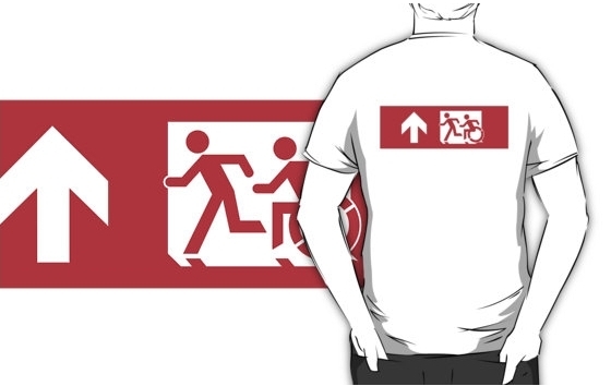 Accessible Exit Sign Project Wheelchair Wheelie Running Man Symbol Means of Egress Icon Disability Emergency Evacuation Fire Safety Adult T-shirt 516
