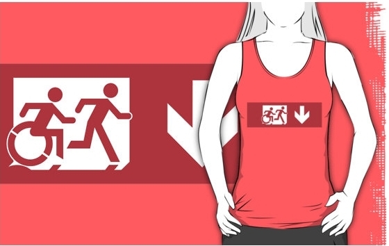 Accessible Exit Sign Project Wheelchair Wheelie Running Man Symbol Means of Egress Icon Disability Emergency Evacuation Fire Safety Adult T-shirt 528