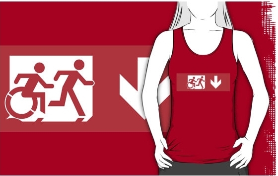 Accessible Exit Sign Project Wheelchair Wheelie Running Man Symbol Means of Egress Icon Disability Emergency Evacuation Fire Safety Adult T-shirt 529