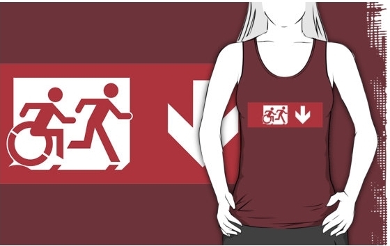 Accessible Exit Sign Project Wheelchair Wheelie Running Man Symbol Means of Egress Icon Disability Emergency Evacuation Fire Safety Adult T-shirt 530