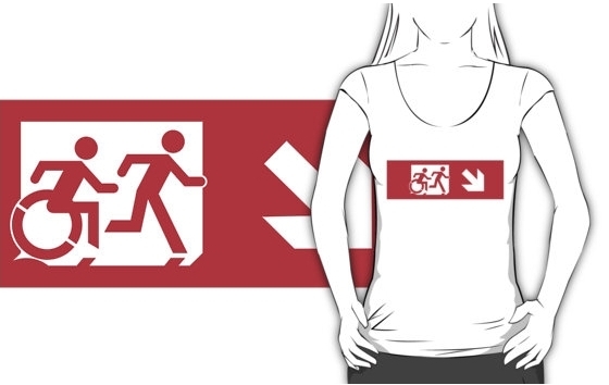 Accessible Exit Sign Project Wheelchair Wheelie Running Man Symbol Means of Egress Icon Disability Emergency Evacuation Fire Safety Adult T-shirt 533