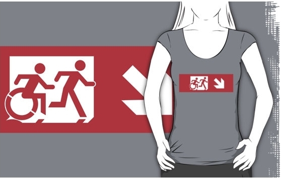Accessible Exit Sign Project Wheelchair Wheelie Running Man Symbol Means of Egress Icon Disability Emergency Evacuation Fire Safety Adult T-shirt 534