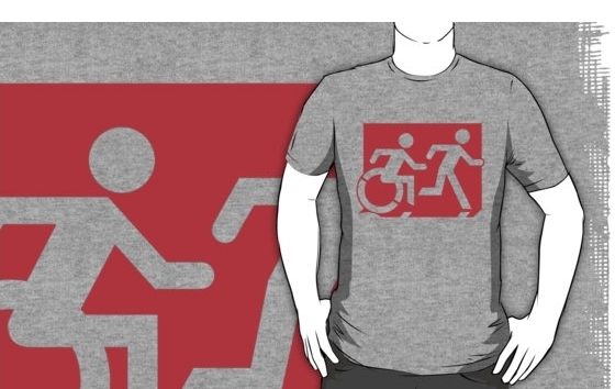Accessible Exit Sign Project Wheelchair Wheelie Running Man Symbol Means of Egress Icon Disability Emergency Evacuation Fire Safety Adult T-shirt 538