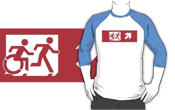 Accessible Exit Sign Project Wheelchair Wheelie Running Man Symbol Means of Egress Icon Disability Emergency Evacuation Fire Safety Adult T-shirt 545