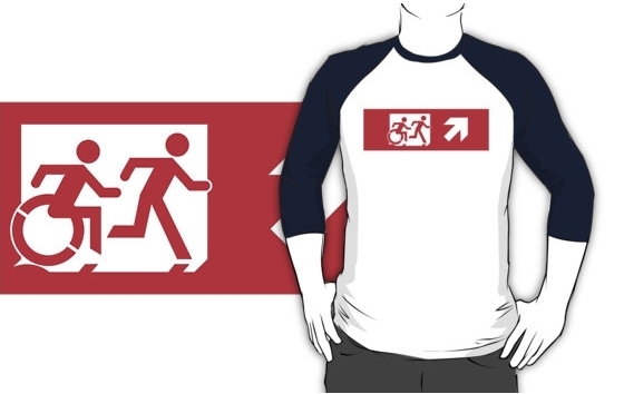 Accessible Exit Sign Project Wheelchair Wheelie Running Man Symbol Means of Egress Icon Disability Emergency Evacuation Fire Safety Adult T-shirt 546