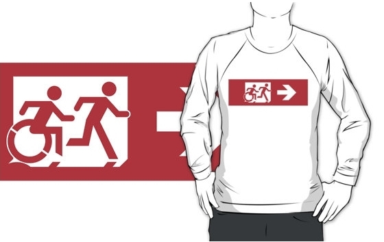 Accessible Exit Sign Project Wheelchair Wheelie Running Man Symbol Means of Egress Icon Disability Emergency Evacuation Fire Safety Adult T-shirt 549