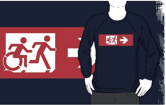 Accessible Exit Sign Project Wheelchair Wheelie Running Man Symbol Means of Egress Icon Disability Emergency Evacuation Fire Safety Adult T-shirt 553