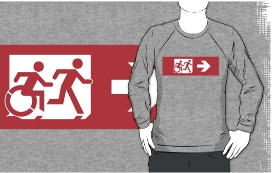 Accessible Exit Sign Project Wheelchair Wheelie Running Man Symbol Means of Egress Icon Disability Emergency Evacuation Fire Safety Adult T-shirt 556