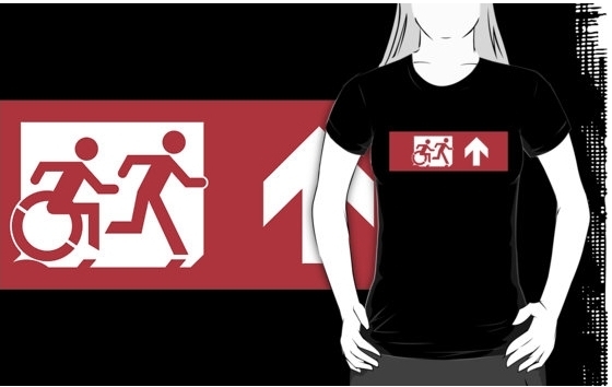 Accessible Exit Sign Project Wheelchair Wheelie Running Man Symbol Means of Egress Icon Disability Emergency Evacuation Fire Safety Adult T-shirt 557