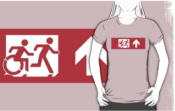Accessible Exit Sign Project Wheelchair Wheelie Running Man Symbol Means of Egress Icon Disability Emergency Evacuation Fire Safety Adult T-shirt 558