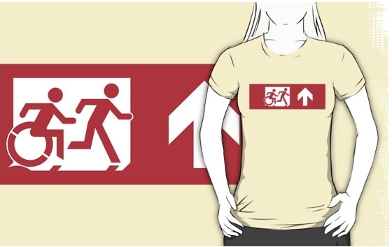 Accessible Exit Sign Project Wheelchair Wheelie Running Man Symbol Means of Egress Icon Disability Emergency Evacuation Fire Safety Adult T-shirt 559