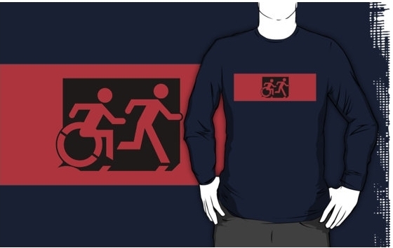 Accessible Exit Sign Project Wheelchair Wheelie Running Man Symbol Means of Egress Icon Disability Emergency Evacuation Fire Safety Adult T-shirt 560