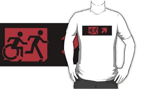 Accessible Exit Sign Project Wheelchair Wheelie Running Man Symbol Means of Egress Icon Disability Emergency Evacuation Fire Safety Adult T-shirt 561