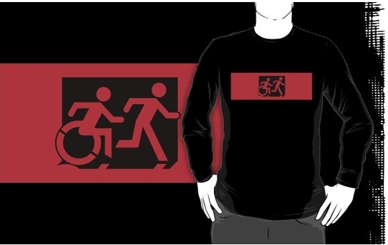 Accessible Exit Sign Project Wheelchair Wheelie Running Man Symbol Means of Egress Icon Disability Emergency Evacuation Fire Safety Adult T-shirt 562