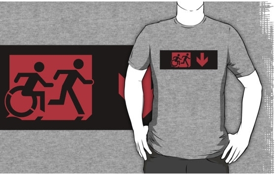 Accessible Exit Sign Project Wheelchair Wheelie Running Man Symbol Means of Egress Icon Disability Emergency Evacuation Fire Safety Adult T-shirt 563