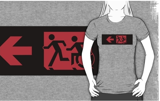 Accessible Exit Sign Project Wheelchair Wheelie Running Man Symbol Means of Egress Icon Disability Emergency Evacuation Fire Safety Adult T-shirt 569