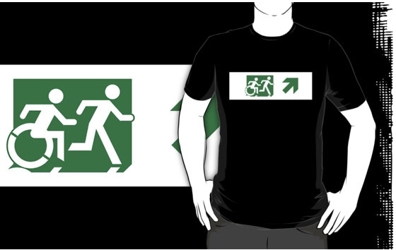 Accessible Exit Sign Project Wheelchair Wheelie Running Man Symbol Means of Egress Icon Disability Emergency Evacuation Fire Safety Adult T-shirt 589