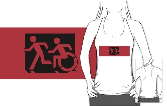 Accessible Exit Sign Project Wheelchair Wheelie Running Man Symbol Means of Egress Icon Disability Emergency Evacuation Fire Safety Adult T-shirt 594