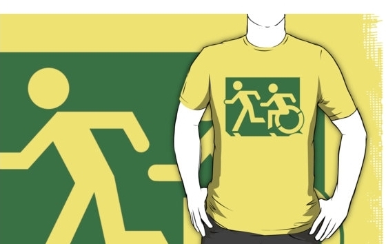 Accessible Exit Sign Project Wheelchair Wheelie Running Man Symbol Means of Egress Icon Disability Emergency Evacuation Fire Safety Adult T-shirt 600