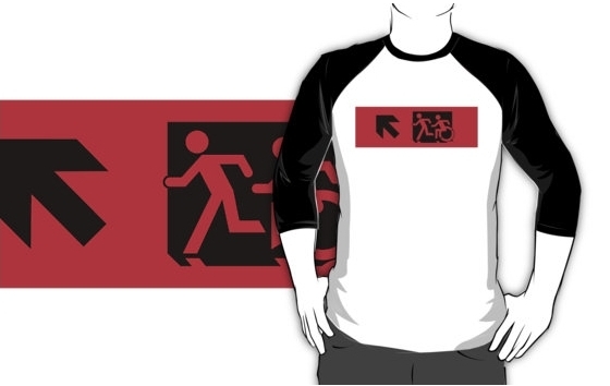Accessible Exit Sign Project Wheelchair Wheelie Running Man Symbol Means of Egress Icon Disability Emergency Evacuation Fire Safety Adult T-shirt 603