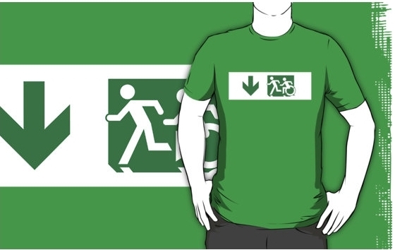 Accessible Exit Sign Project Wheelchair Wheelie Running Man Symbol Means of Egress Icon Disability Emergency Evacuation Fire Safety Adult T-shirt 606
