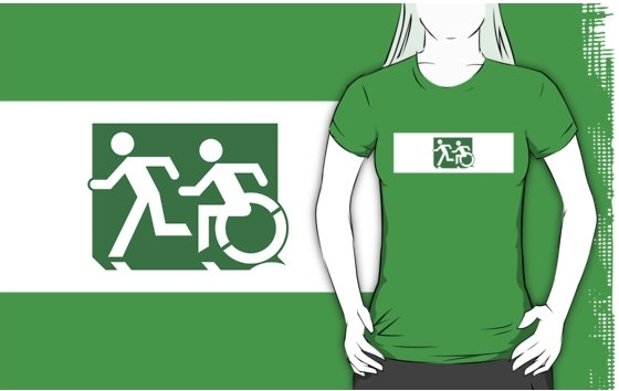 Accessible Exit Sign Project Wheelchair Wheelie Running Man Symbol Means of Egress Icon Disability Emergency Evacuation Fire Safety Adult T-shirt 608