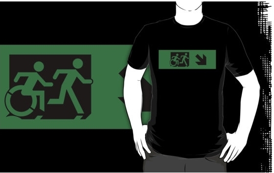 Accessible Exit Sign Project Wheelchair Wheelie Running Man Symbol Means of Egress Icon Disability Emergency Evacuation Fire Safety Adult T-shirt 616