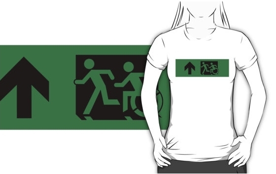Accessible Exit Sign Project Wheelchair Wheelie Running Man Symbol Means of Egress Icon Disability Emergency Evacuation Fire Safety Adult T-shirt 625