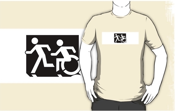 Accessible Exit Sign Project Wheelchair Wheelie Running Man Symbol Means of Egress Icon Disability Emergency Evacuation Fire Safety Adult T-shirt 628