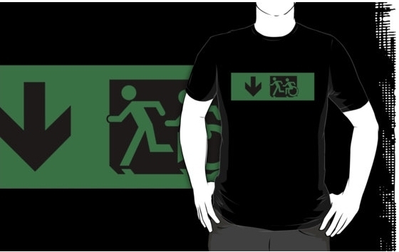 Accessible Exit Sign Project Wheelchair Wheelie Running Man Symbol Means of Egress Icon Disability Emergency Evacuation Fire Safety Adult T-shirt 633